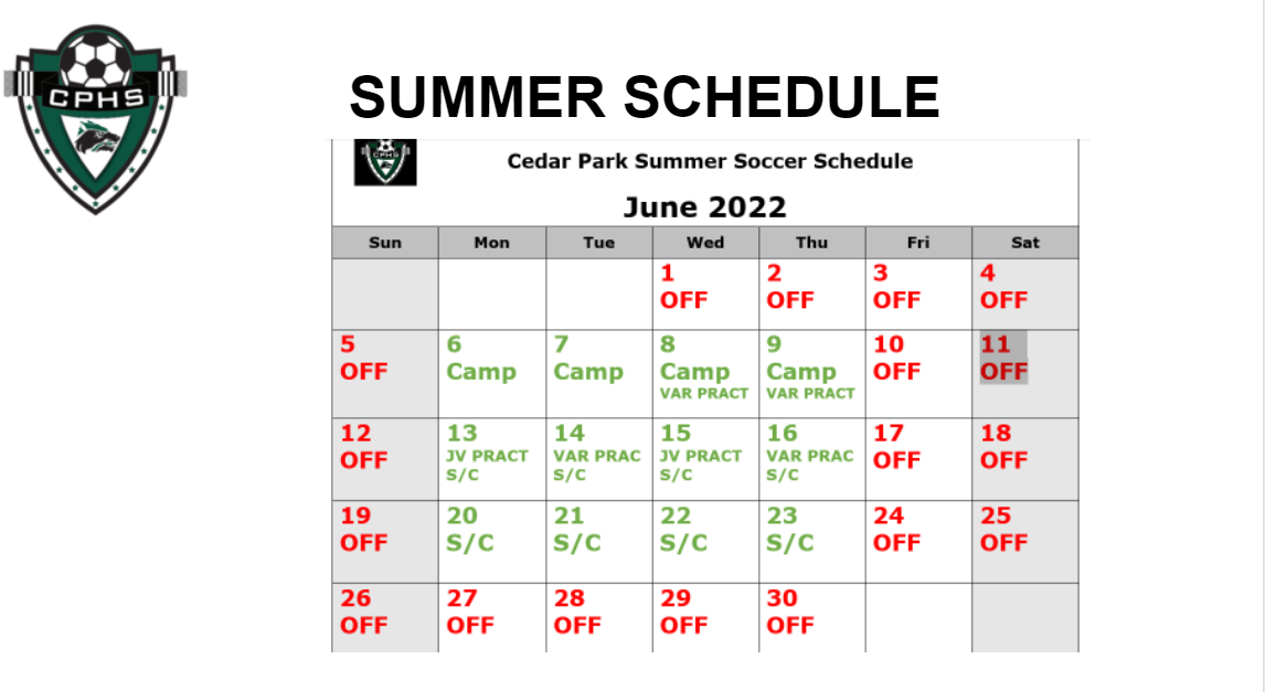 This website is maintained by the Cedar Park High School Girls Soccer Booster Club and is not a part of Cedar Park High School or the Leander Independent School District. Neither Cedar Park High School nor Leander ISD is responsible for the content of this website or the content of links external to this website.